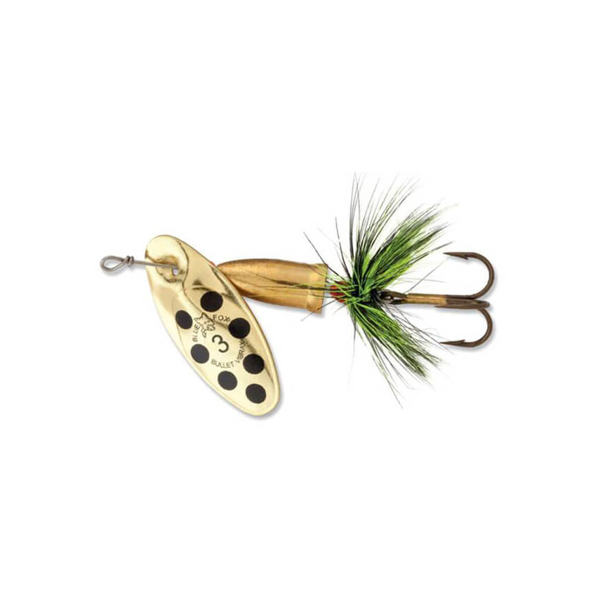 With 30% more weight than the Vibrax® Original, the Vibrax® Bullet Fly has been specifically engineered to fish faster running, deeper waters. It’s inline blade spins directly on the shaft in a wider arc for maximum vibration. A dressed tail gives added life-like attraction. The patented two-part body, which virtually eliminates line twist is really what sets all Blue Fox spinners apart. Whether casting for still water predators such as perch and chub, or working fast moving rivers for trout and salmon, this low-frequency spinner is going to create the noise and vibration required to trigger a strike.