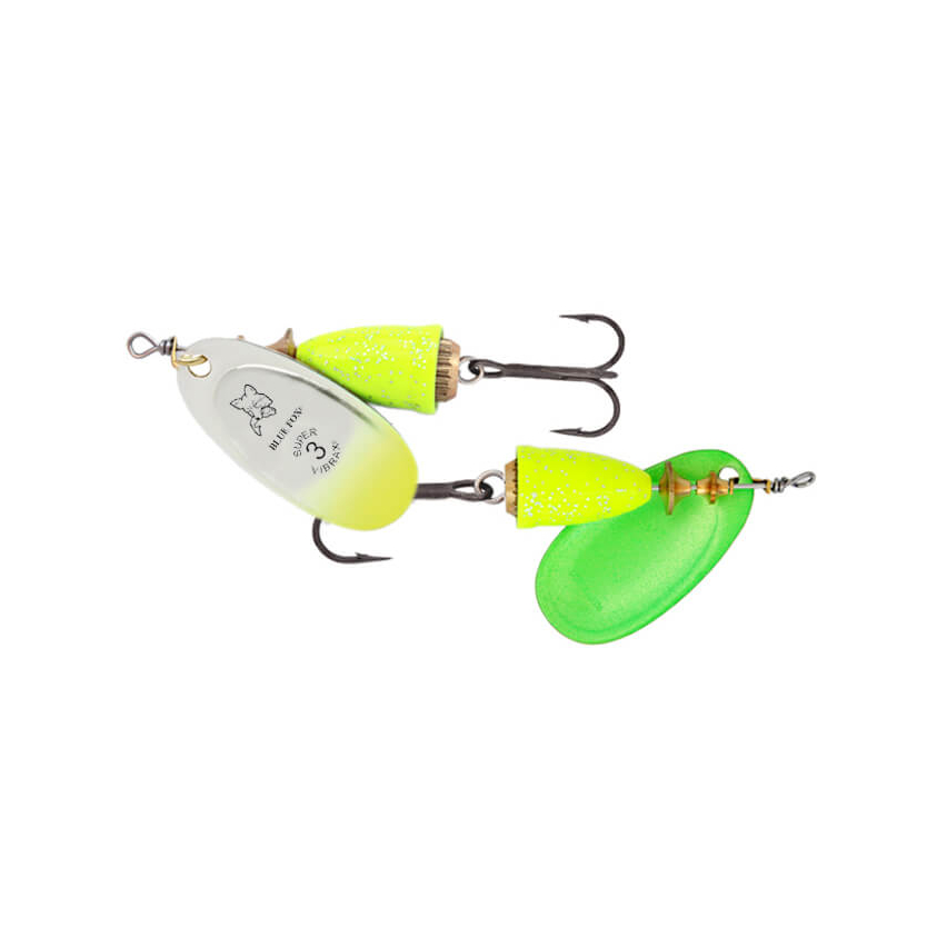 Blue Fox Vibrax Flake - is a variant of the Original with silver flakes in the painting for extra visibility in the water.