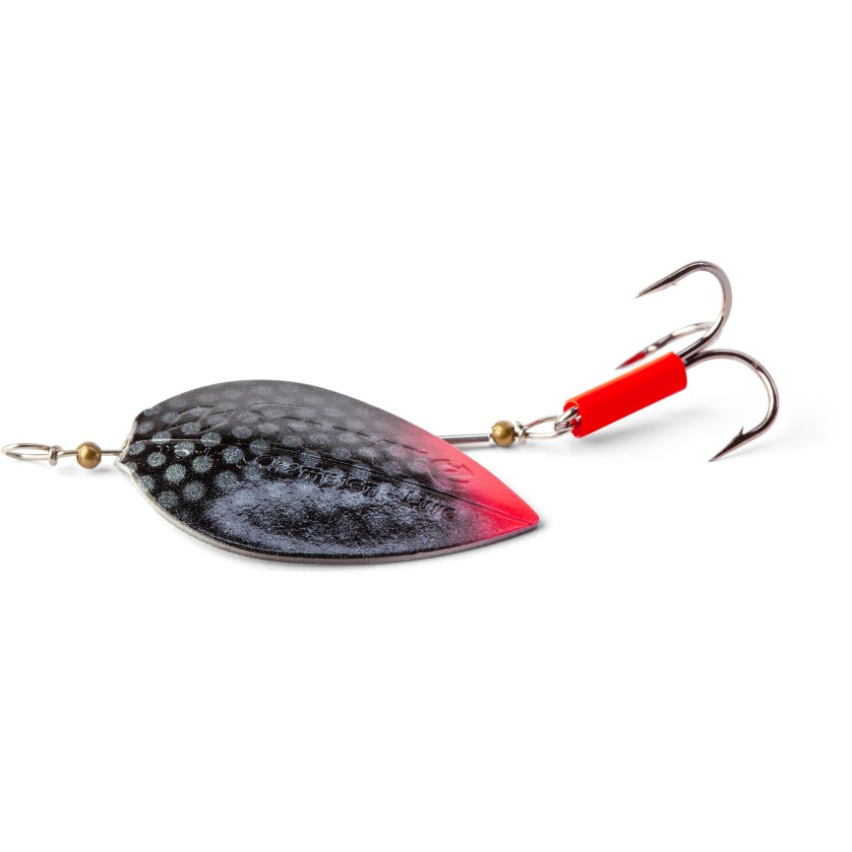 Тело спиннера изготавливается из толстого металла (толщиной 1 мм) без дополнительного груза. Хвост блесны работает даже при остановке, а во время падения она движется из стороны в сторону и поэтому может использоваться на любой глубине.