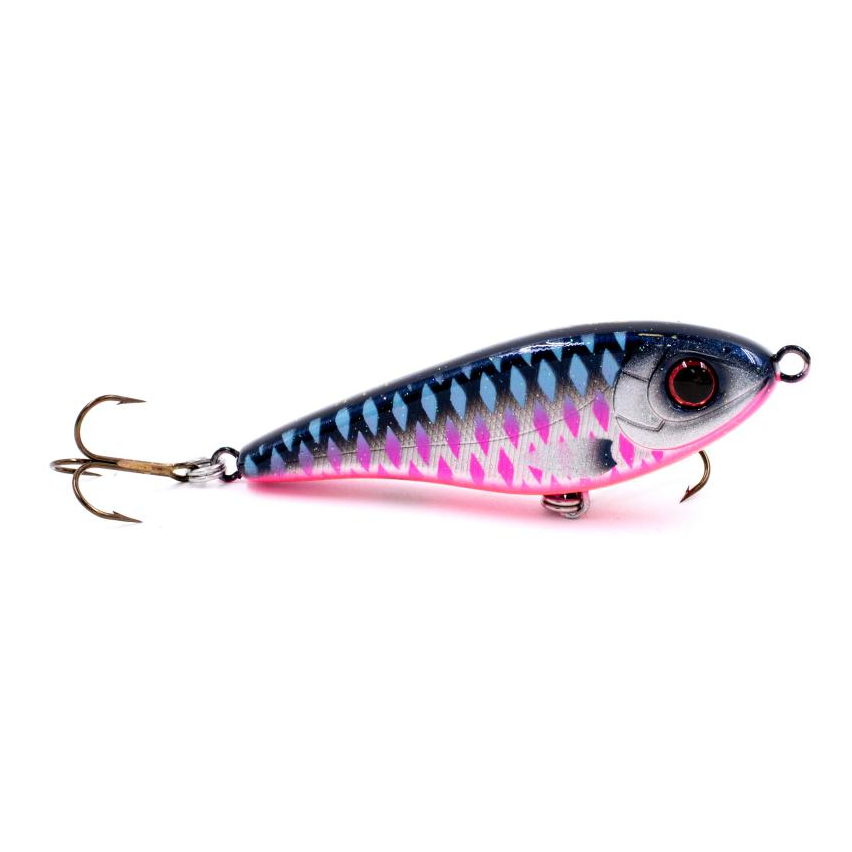 Strike Pro Buster Jerk V - уменьшенная версия знаменитого джеркбейта Buster Jerk. Длиной данный воблер 8,5 сантиметров и весит 17,5 грамм. Формой своего корпуса имитирует широкотелую рыбку. Крупный воблер имеет красивые и реалистичные вариации раскрасок, оснащен качественными заводными кольцами и острыми крючками Owner. При проводке издает шум, благодаря шарикам, расположенным внутри корпуса, чем привлекает хищника с больших расстояний. Это также полезно при ловле в мутной воде или в условиях недостаточной видимости. Приманка обладает очень красивой игрой, благодаря особенному расположению огрузки. Во время пауз проводки джерк соблазнительно покачивает боками. На коротких ритмичных рывочках джеркбейт красиво рыскает из стороны в сторону. На более размашистых рывках игра Buster Jerk V приобретает широкую амплитуду. В проводку приманки обязательно нужно включать непродолжительные паузы. Джеркбейт очень прост в обращении и легко управляем. Strike Pro Buster Jerk V предназначен для ловли средней и крупной щуки и крупного окуня.