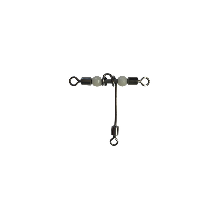 Рыболовные вертлюги со специальной конструкцией T-Turn помогают значительно снизить трение между основной леской и поводком. Благодаря этой конструкции верхний вертлюг можно прикрепить к основной леске, средний — к грузилу, а нижний с поводком — к крючку, либо использовать другие комбинации. Светящаяся бусина отлично привлекает рыбу при глубоководной или ночной ловле.