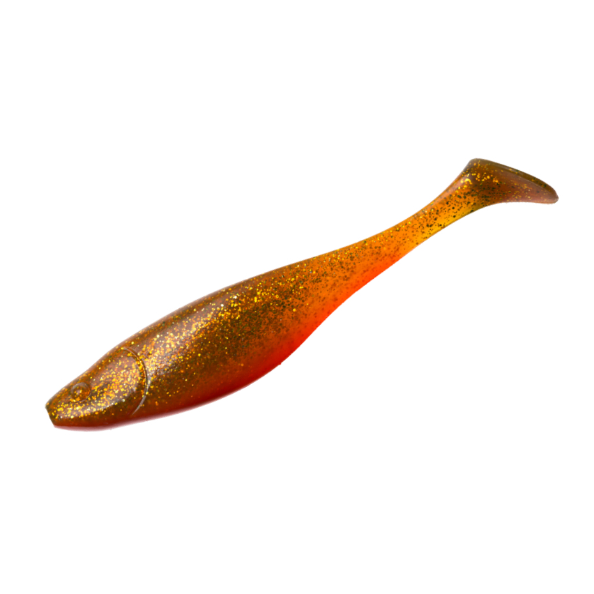 Приманка выполнена из мягкого, но очень прочного материала. В передней части брюшка расположена «подошва» придающая приманке неотразимые и мощные колебания. Хвост средних размеров, во время проводки не только машет из стороны всторону, но и подкручивается вокруг своей оси, чем создает дополнительную турбулентность.