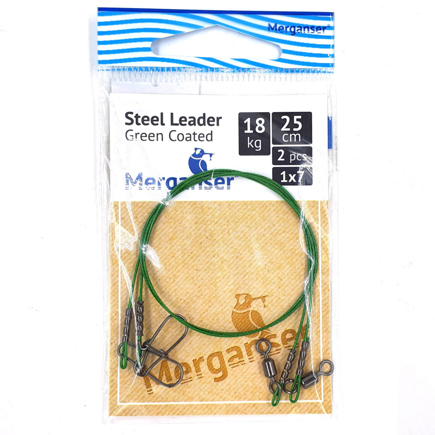 Поводок Merganser стальной, 1x7 с зелёным покрытием, 18 кг, 25 см, 2 шт