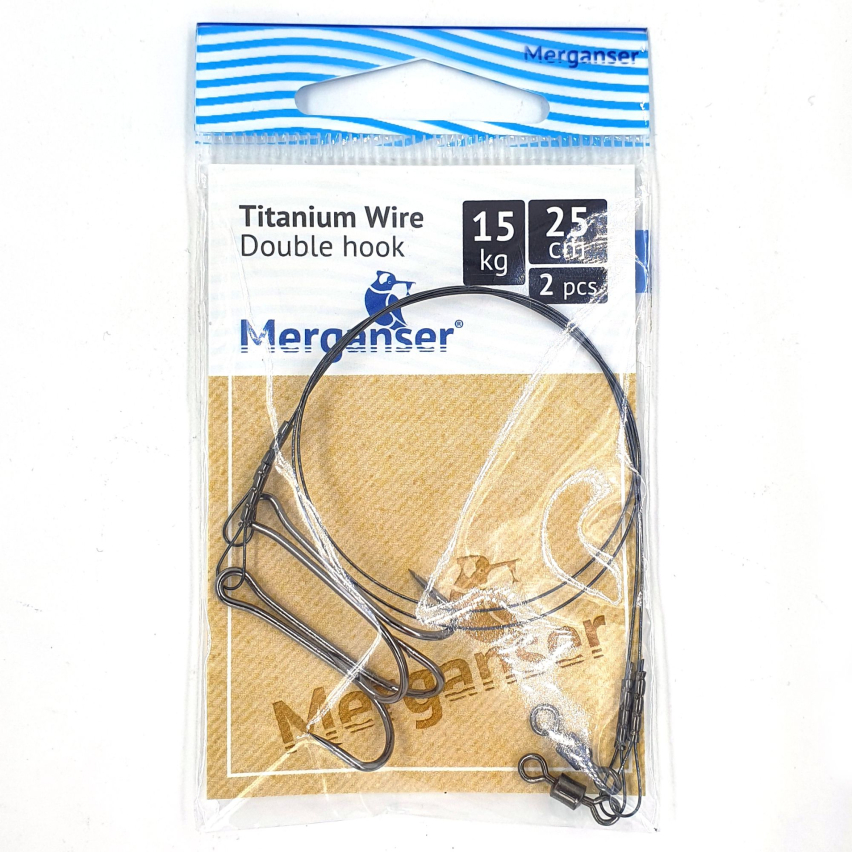 Поводок Merganser титановый, 15 кг, 25 см + вертлюг & двойник #2. 2 шт