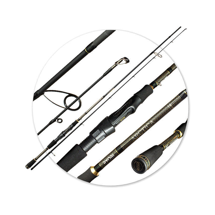 Серия спиннинговых удилищ Arctica от бренда Ryobi относится к классу “medium heavy” и имеет тест 10-45 грамма. Мощные бланки удилищ изготавливаются из высококачественного карбона и отличаются повышенной прочностью. Прочные и упругие бланки удилищ Arctica отличаются повышенной жесткостью и легко справятся с вываживанием любого трофея. Бланки также помогают гасить рывки хищника и позволяют полностью контролировать процесс вываживания. Спиннинги оснащаются качественной фурнитурой и пропускными кольцами серии KR-SiC, надежным катушкодержателем и удобной разнесенной рукоятью из пробки и EVA.