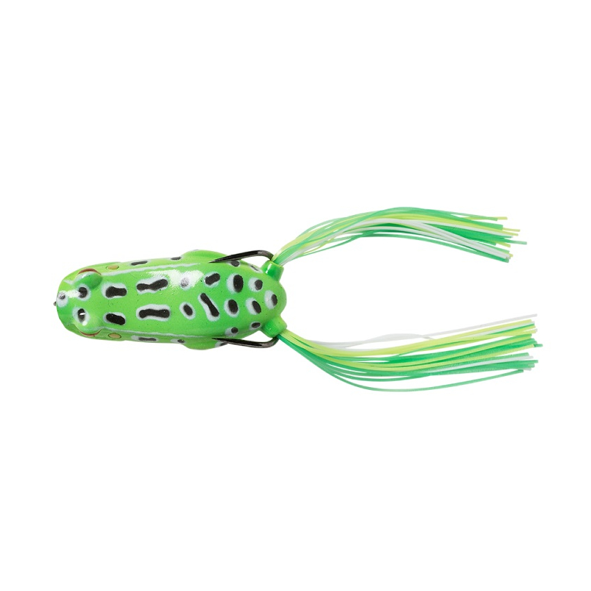 Пустотелая приманка-незацепляйка, имитирующая обыкновенную лягушку и работающая по принципу поппера. Имеет невероятно реалистичный внешний вид с тщательно проработанными деталями дизайна. Её мягкий и в тоже время прочный долговечный ПВХ-корпус снабжён "юбкой" из силикона, создающей дополнительный визуальный эффект во время проводки. Сверхострый двойной крючок гарантирует надёжную подсечку и уверенное вываживание. В комплекте с приманкой также предлагается съёмный одинарный крючок.