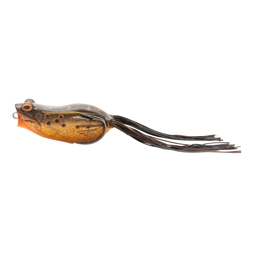 Пустотелая приманка-незацепляйка, имитирующая обыкновенную лягушку и работающая по принципу поппера. Имеет невероятно реалистичный внешний вид с тщательно проработанными деталями дизайна. Её мягкий и в тоже время прочный долговечный ПВХ-корпус снабжён "юбкой" из силикона, создающей дополнительный визуальный эффект во время проводки. Сверхострый двойной крючок гарантирует надёжную подсечку и уверенное вываживание.