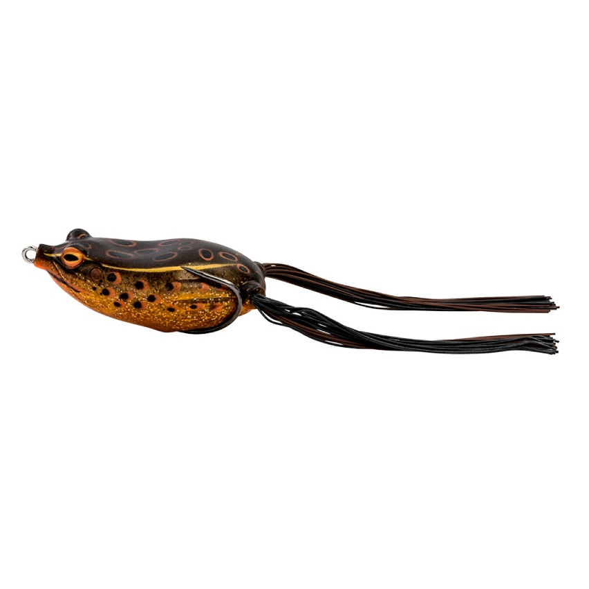 Пустотелая приманка-незацепляйка, имитирующая обыкновенную лягушку и работающая по принципу поппера. Имеет невероятно реалистичный внешний вид с тщательно проработанными деталями дизайна. Её мягкий и в тоже время прочный долговечный ПВХ-корпус снабжён "юбкой" из силикона, создающей дополнительный визуальный эффект во время проводки. Сверхострый двойной крючок гарантирует надёжную подсечку и уверенное вываживание.