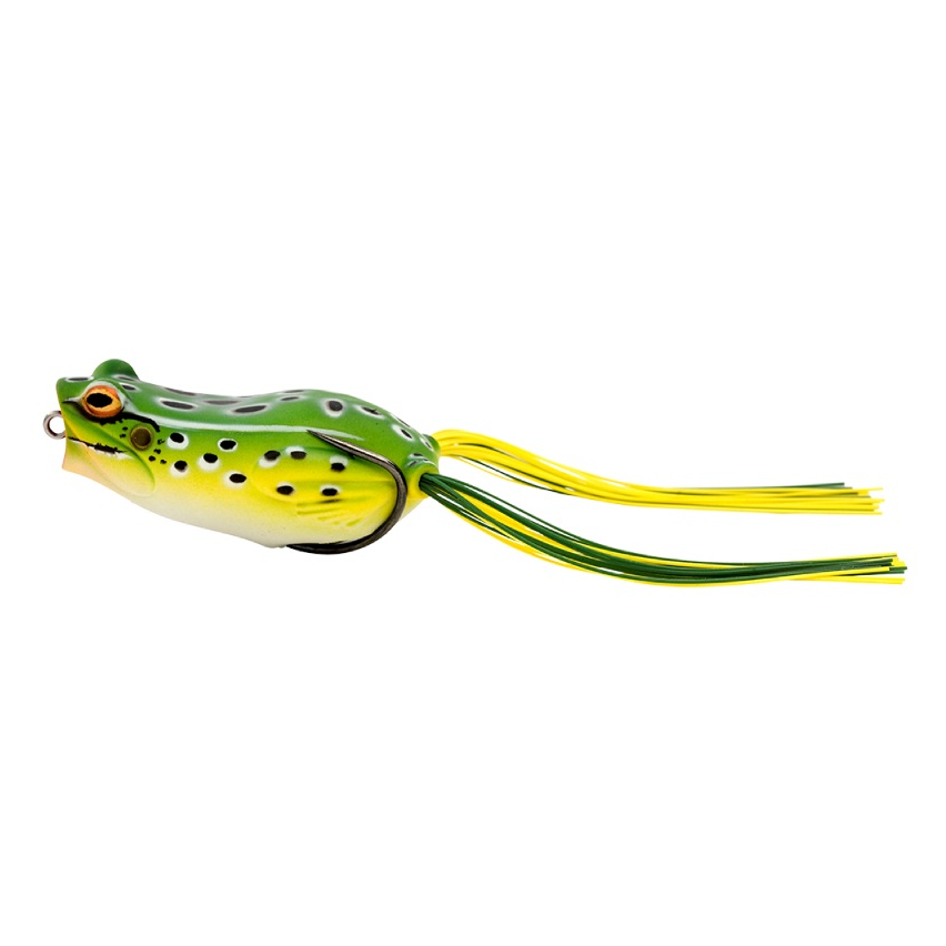 Пустотелая приманка-незацепляйка, имитирующая обыкновенную лягушку и работающая по принципу поппера. Имеет невероятно реалистичный внешний вид с тщательно проработанными деталями дизайна. Её мягкий и в тоже время прочный долговечный ПВХ-корпус снабжён "юбкой" из силикона, создающей дополнительный визуальный эффект во время проводки. Сверхострый двойной крючок гарантирует надёжную подсечку и уверенное вываживание.