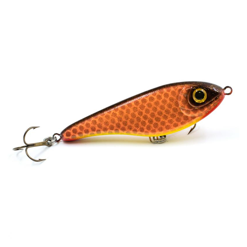 Strike Pro Buster Jerk ll - чуть меньшая по размеру версия знаменитого джеркбейта Buster Jerk. Формой своего корпуса имитирует широкотелую рыбку. Воблер имеет красивые и реалистичные вариации раскрасок. Оснащен качественными заводными кольцами и острыми крючками Owner. При проводке издает низкочастотный шум, благодаря шарикам, расположенным внутри корпуса. Привлекает хищника с больших расстояний, что будет особенно эффективно в условиях недостаточной видимости. Приманка обладает очень красивой игрой, благодаря особенному расположению огрузки. Во время пауз проводки соблазнительно покачивает боками. На коротких ритмичных рывках джеркбейт красиво рыскает из стороны в сторону. В проводку приманки обязательно нужно включать непродолжительные паузы. Джеркбейт очень прост в обращении и легко управляем. Рекомендуется оснащать данную приманку упругим стальным или флюорокарбоновым поводком. Это защитит леску от зубов хищников, а также предотвратит захлест крючков за леску при проводке. Strike Pro Buster Jerk ll предназначен для ловли крупной щуки.