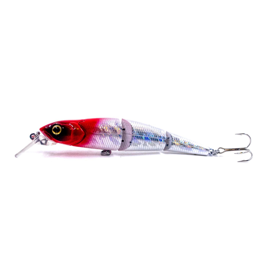 Составной воблер Strike Pro Flying Fish Joint 110 имеет вытянутое узкое тело, соостоящее из нескольких сегментов, скрепленных между собой фирменным соединением “велосипедная цепь”. Такое соединение делает тело воблера очень подвижным, в то же время очень прочным. На голове приманки имеются выпуклые жабры с глубокими полостями, что дает большое количество турбулентных завихрений от воблера во время проводки. Приманка оснащена небольшой изящной лопаткой, расположенной под углом около 45 градусов. На ней расположено колечко для крепления лески. Основная огрузка воблера расположена в переднем сегменте. В среднем сегменте находится среднечастотная погремушка с пластиковыми шариками.