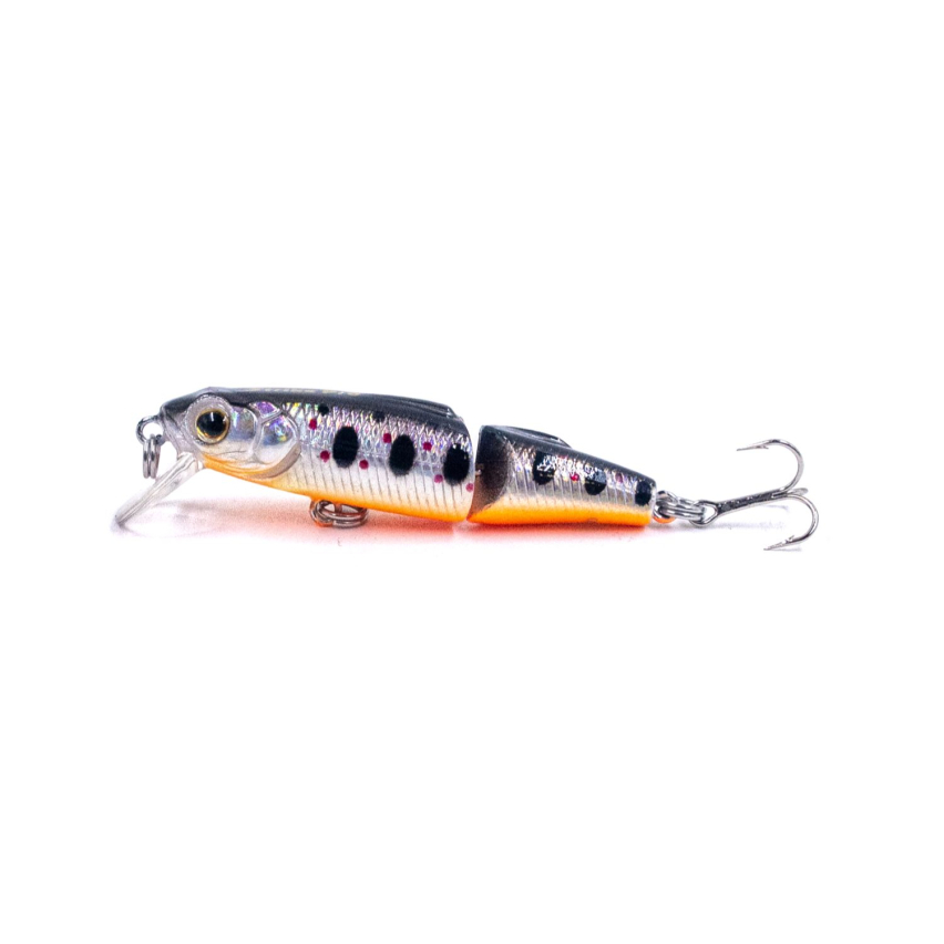 Миниатюрный двухсоставный воблер Strike Pro Silver Sprat имеет вытянутое тело, характерное для класса “минноу”. Оснащен лопастью, расположенной под углом около 45 градусов к оси приманки. Огрузка располагается в головной части переднего сегмента воблера. Воблеры этой серии тонущие. В свободном падении в воде они занимают положение с легким наклоном головы в низ. Это улучшает игру приманки и помогает предотвратить захлест крючка за леску после заброса приманки. На равномерной проводке Silver Sprat имеют активную среднечастотную игру. При увеличении скорости проводки воблер начинает подниматься к поверхности. Эти приманки отлично играют на твичинговой проводке, но стоит избегать при этом резких рывков. Хорошо подойдут для этой приманки различные варианты проводки стоп-эдн-гоу, выполняемой мягкими потяжками удилища. На потяжках воблер, играя, поднимается вверх, а во время пауз тонет, что очень хорошо провоцирует рыбу на атаку. Воблеры Silver Sprat одинаково хорошо проявляют себя как и на река, так и на водоемах со стоячей водой. На воблеры этой серии хорошо ловится окунь, форель, голавль и щука.