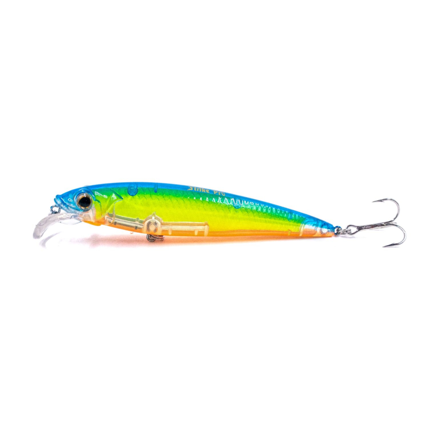 Воблер Strike Pro Beakster - приманка типа “минноу”. Главные отличительные особенности этой приманки - это уникальные гидродинамические свойства и трехмерная голографическая окраска. Beakster оснащен особой лопастью загнутой формы. Именно эта особенность дает воблеру его привлекательную, рыскающую низкочастотную игру с большой амплитудой колебаний. Также такая форма лопасти позволяет приманке стабильно придерживаться на заданной глубине. Лучше всего для такой приманки подойдет равномерная проводка или рывковая с очень короткими паузами. Длительных пауз стоит при рывковой проводке Beakster стоит избегать, так как воблер достаточно быстро всплывает. Воблер Strike Pro Beakster станет отличным выбором для троллинговой ловли окуня, щуки, судака и лососося, где предпочтительна низкая скорость проводки, так как он отлично работает при скорости 2 - 3 км/час.
