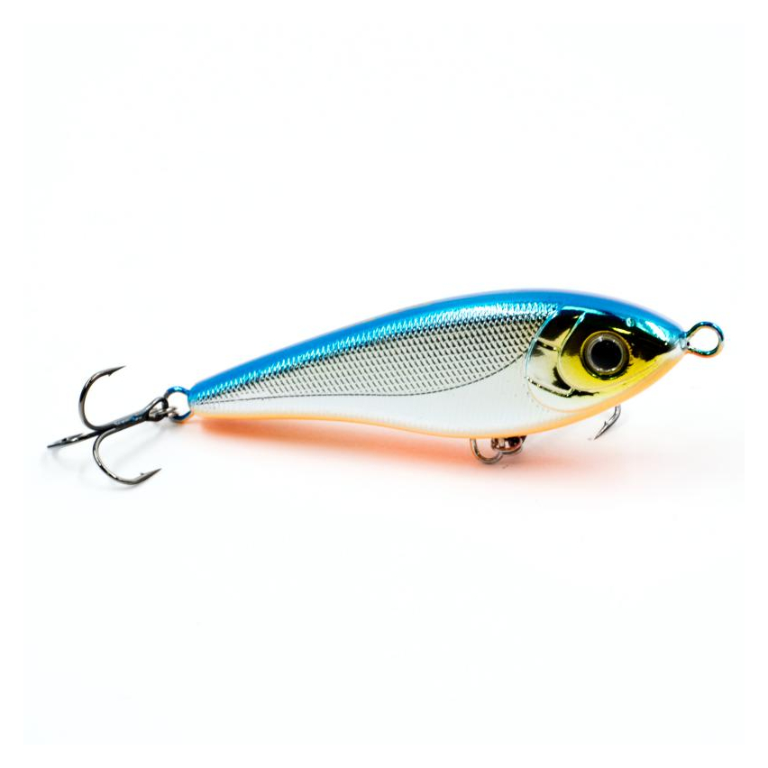 Strike Pro Buster Jerk V - уменьшенная версия знаменитого джеркбейта Buster Jerk. Длиной данный воблер 8,5 сантиметров и весит 17,5 грамм. Формой своего корпуса имитирует широкотелую рыбку. Крупный воблер имеет красивые и реалистичные вариации раскрасок, оснащен качественными заводными кольцами и острыми крючками Owner. При проводке издает шум, благодаря шарикам, расположенным внутри корпуса, чем привлекает хищника с больших расстояний. Это также полезно при ловле в мутной воде или в условиях недостаточной видимости. Приманка обладает очень красивой игрой, благодаря особенному расположению огрузки. Во время пауз проводки джерк соблазнительно покачивает боками. На коротких ритмичных рывочках джеркбейт красиво рыскает из стороны в сторону. На более размашистых рывках игра Buster Jerk V приобретает широкую амплитуду. В проводку приманки обязательно нужно включать непродолжительные паузы. Джеркбейт очень прост в обращении и легко управляем. Strike Pro Buster Jerk V предназначен для ловли средней и крупной щуки и крупного окуня.