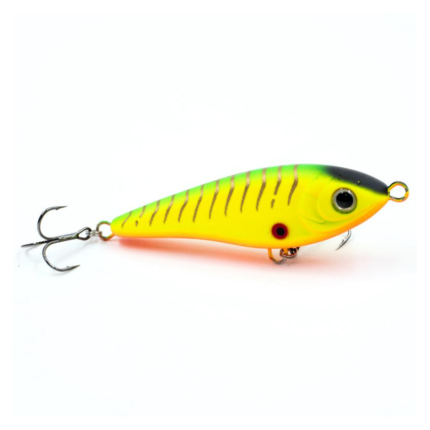 Strike Pro Buster Jerk V - уменьшенная версия знаменитого джеркбейта Buster Jerk. Длиной данный воблер 8,5 сантиметров и весит 17,5 грамм. Формой своего корпуса имитирует широкотелую рыбку. Крупный воблер имеет красивые и реалистичные вариации раскрасок, оснащен качественными заводными кольцами и острыми крючками Owner. При проводке издает шум, благодаря шарикам, расположенным внутри корпуса, чем привлекает хищника с больших расстояний. Это также полезно при ловле в мутной воде или в условиях недостаточной видимости. Приманка обладает очень красивой игрой, благодаря особенному расположению огрузки. Во время пауз проводки джерк соблазнительно покачивает боками. На коротких ритмичных рывочках джеркбейт красиво рыскает из стороны в сторону. На более размашистых рывках игра Buster Jerk V приобретает широкую амплитуду. В проводку приманки обязательно нужно включать непродолжительные паузы. Джеркбейт очень прост в обращении и легко управляем. Strike Pro Buster Jerk V предназначен для ловли средней и крупной щуки и крупного окуня.
