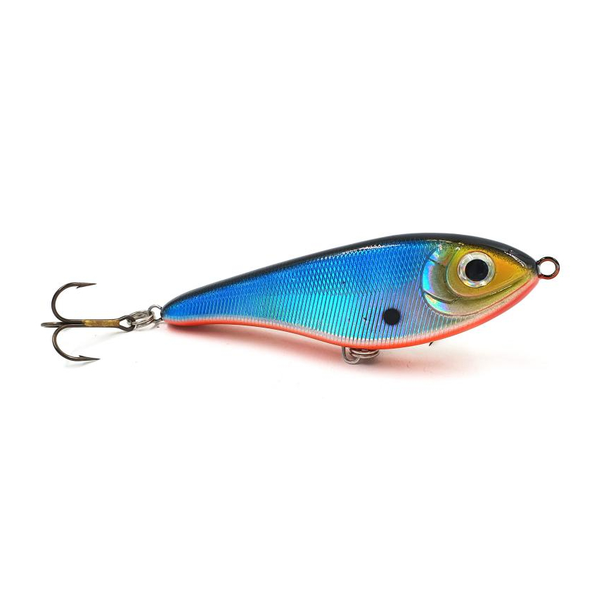 Strike Pro Buster Jerk V - уменьшенная версия знаменитого джеркбейта Buster Jerk. Длиной данный воблер 8,5 сантиметров и весит 17,5 грамм. Формой своего корпуса имитирует широкотелую рыбку. Крупный воблер имеет красивые и реалистичные вариации раскрасок, оснащен качественными заводными кольцами и острыми крючками Owner. При проводке издает шум, благодаря шарикам, расположенным внутри корпуса, чем привлекает хищника с больших расстояний. Это также полезно при ловле в мутной воде или в условиях недостаточной видимости. Приманка обладает очень красивой игрой, благодаря особенному расположению огрузки. Во время пауз проводки джерк соблазнительно покачивает боками. На коротких ритмичных рывочках джеркбейт красиво рыскает из стороны в сторону. На более размашистых рывках игра Buster Jerk V приобретает широкую амплитуду. В проводку приманки обязательно нужно включать непродолжительные паузы. Джеркбейт очень прост в обращении и легко управляем. Strike Pro Buster Jerk V предназначен для ловли средней и крупной щуки и крупного окуня.