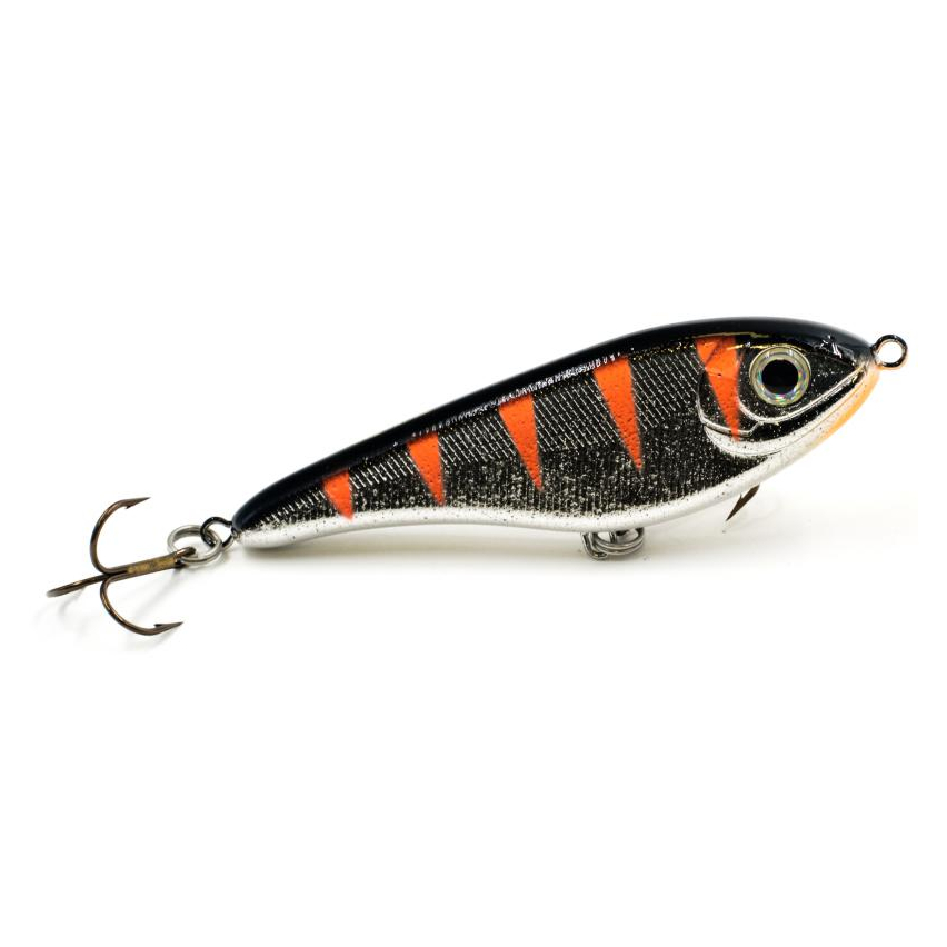 Strike Pro Buster Jerk V - уменьшенная версия знаменитого джеркбейта Buster Jerk. Длиной данный воблер 8,5 сантиметров и весит 17,5 грамм. Формой своего корпуса имитирует широкотелую рыбку. Крупный воблер имеет красивые и реалистичные вариации раскрасок, оснащен качественными заводными кольцами и острыми крючками Owner. При проводке издает шум, благодаря шарикам, расположенным внутри корпуса, чем привлекает хищника с больших расстояний. Это также полезно при ловле в мутной воде или в условиях недостаточной видимости. Приманка обладает очень красивой игрой, благодаря особенному расположению огрузки. Во время пауз проводки джерк соблазнительно покачивает боками. На коротких ритмичных рывочках джеркбейт красиво рыскает из стороны в сторону. На более размашистых рывках игра Buster Jerk V приобретает широкую амплитуду. В проводку приманки обязательно нужно включать непродолжительные паузы. Джеркбейт очень прост в обращении и легко управляем. Strike Pro Buster Jerk V предназначен для ловли средней и крупной щуки и крупного окуня.