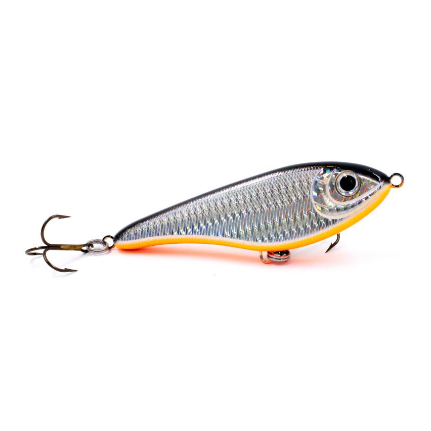 Strike Pro Buster Jerk V - уменьшенная версия знаменитого джеркбейта Buster Jerk. Длиной данный воблер 8,5 сантиметров и весит 17,5 грамм. Формой своего корпуса имитирует широкотелую рыбку. Крупный воблер имеет красивые и реалистичные вариации раскрасок, оснащен качественными заводными кольцами и острыми крючками Owner. При проводке издает шум, благодаря шарикам, расположенным внутри корпуса, чем привлекает хищника с больших расстояний. Это также полезно при ловле в мутной воде или в условиях недостаточной видимости. Приманка обладает очень красивой игрой, благодаря особенному расположению огрузки. Во время пауз проводки джерк соблазнительно покачивает боками. На коротких ритмичных рывочках джеркбейт красиво рыскает из стороны в сторону. На более размашистых рывках игра Buster Jerk V приобретает широкую амплитуду. В проводку приманки обязательно нужно включать непродолжительные паузы. Джеркбейт очень прост в обращении и легко управляем. Strike Pro Buster Jerk V предназначен для ловли средней и крупной щуки и крупного окуня.