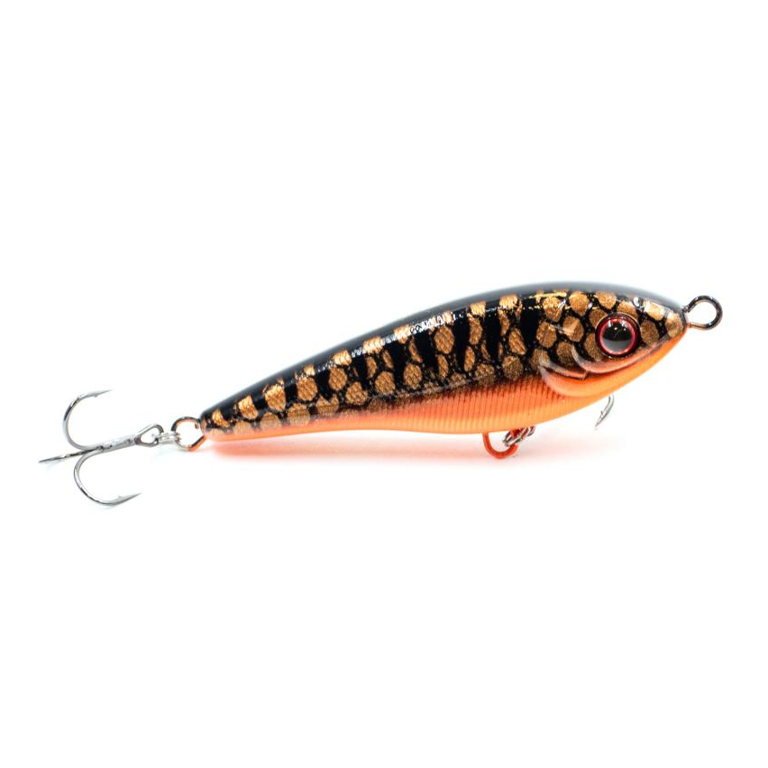 Strike Pro Buster Jerk V - уменьшенная версия знаменитого джеркбейта Buster Jerk. Длиной данный воблер 8,5 сантиметров и весит 17,5 грамм. Формой своего корпуса имитирует широкотелую рыбку. Крупный воблер имеет красивые и реалистичные вариации раскрасок, оснащен качественными заводными кольцами и острыми крючками Owner. При проводке издает шум, благодаря шарикам, расположенным внутри корпуса, чем привлекает хищника с больших расстояний. Это также полезно при ловле в мутной воде или в условиях недостаточной видимости. Приманка обладает очень красивой игрой, благодаря особенному расположению огрузки. Во время пауз проводки джерк соблазнительно покачивает боками. На коротких ритмичных рывочках джеркбейт красиво рыскает из стороны в сторону. На более размашистых рывках игра Buster Jerk V приобретает широкую амплитуду. В проводку приманки обязательно нужно включать непродолжительные паузы. Джеркбейт очень прост в обращении и легко управляем. Strike Pro Buster Jerk V предназначен для ловли средней и крупной щуки и крупного окуня.