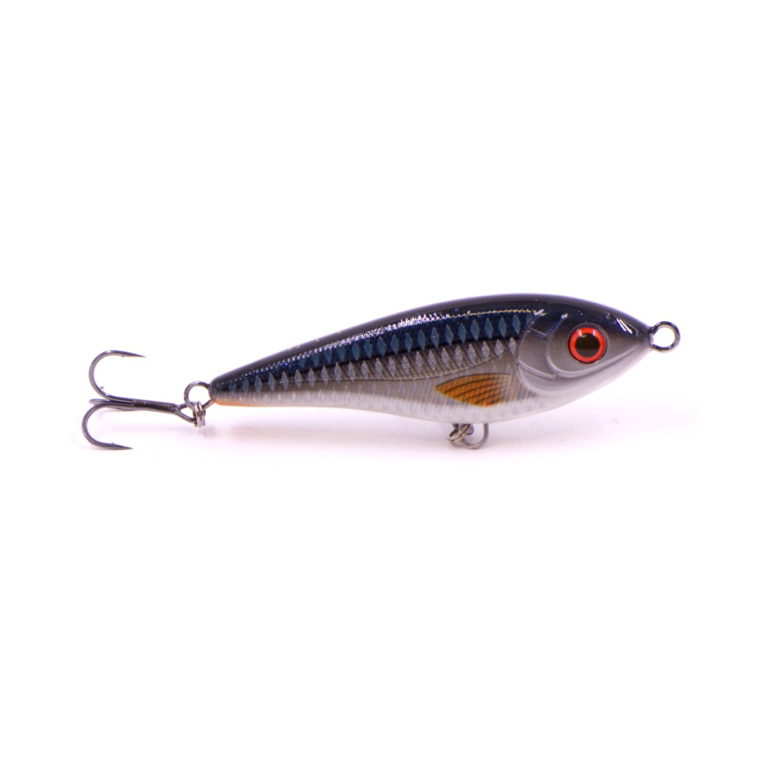 Strike Pro Buster Jerk V - уменьшенная версия знаменитого джеркбейта Buster Jerk. Длиной данный воблер 8,5 сантиметров и весит 17,5 грамм. Формой своего корпуса имитирует широкотелую рыбку. Крупный воблер имеет красивые и реалистичные вариации раскрасок, оснащен качественными заводными кольцами и острыми крючками Owner. При проводке издает шум, благодаря шарикам, расположенным внутри корпуса, чем привлекает хищника с больших расстояний. Это также полезно при ловле в мутной воде или в условиях недостаточной видимости. Приманка обладает очень красивой игрой, благодаря особенному расположению огрузки. Во время пауз проводки джерк соблазнительно покачивает боками. На коротких ритмичных рывочках джеркбейт красиво рыскает из стороны в сторону. На более размашистых рывках игра Buster Jerk V приобретает широкую амплитуду. В проводку приманки обязательно нужно включать непродолжительные паузы. Джеркбейт очень прост в обращении и легко управляем. Strike Pro Buster Jerk V предназначен для ловли средней и крупной щуки и крупного окуня.