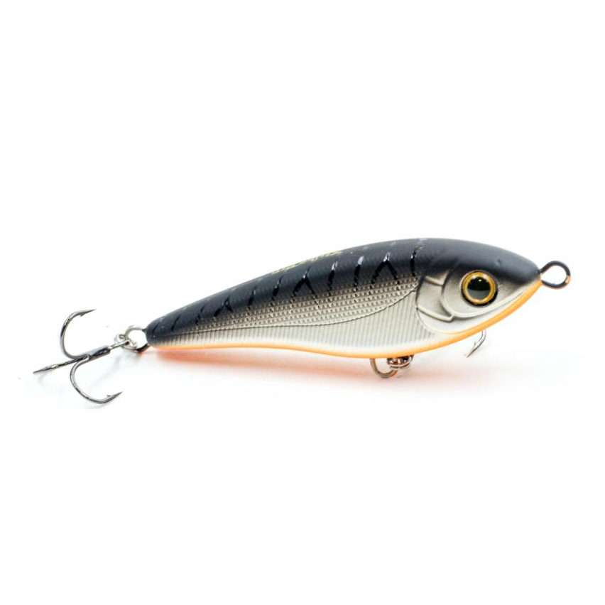 Strike Pro Buster Jerk V - уменьшенная версия знаменитого джеркбейта Buster Jerk. Длиной данный воблер 8,5 сантиметров и весит 17,5 грамм. Формой своего корпуса имитирует широкотелую рыбку. Крупный воблер имеет красивые и реалистичные вариации раскрасок, оснащен качественными заводными кольцами и острыми крючками Owner. При проводке издает шум, благодаря шарикам, расположенным внутри корпуса, чем привлекает хищника с больших расстояний. Это также полезно при ловле в мутной воде или в условиях недостаточной видимости. Приманка обладает очень красивой игрой, благодаря особенному расположению огрузки. Во время пауз проводки джерк соблазнительно покачивает боками. На коротких ритмичных рывочках джеркбейт красиво рыскает из стороны в сторону. На более размашистых рывках игра Buster Jerk V приобретает широкую амплитуду. В проводку приманки обязательно нужно включать непродолжительные паузы. Джеркбейт очень прост в обращении и легко управляем. Strike Pro Buster Jerk V предназначен для ловли средней и крупной щуки и крупного окуня.