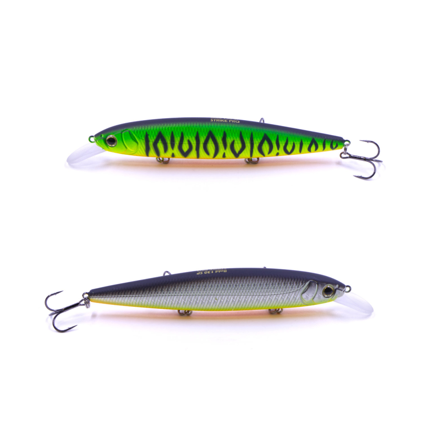 Воблер Strike Pro Bold является моделью приманок класса минноу, обладающих нейтральной плавучестью. На сегодняшний день воблер считают качественной и оригинальной репликой Deps Balisong. Компания Strike Pro не выпускает прямые копии известных приманок, а дорабатывает их и внедряет оригинальные идеи, а также технологии. Данная модель выпускается в двух размерах – 110 и 130 SP. Где вес обеих приманок составляет 15,4 и 24,5 грамм. Форма воблера Strike Pro Bold напоминает вытянутую рыбку со сплюснутыми боками, при этом тело не выглядит маленьким. Воблер легко заметен в воде, тем более для нацеленного на добычу хищника. Изначально была выпущена приманка в 130 размерном варианте, и лишь спустя год, появился Strike Pro Bold 110SP. Последний приглянулся многим спиннингистам своей универсальностью. Как вы можете заметить, у некоторых японских «любимчиков» ответствует 11 сантиметровая модель, популярная среди отечественных рыболовов. Особенностью воблера Strike Pro Bold является специальная магнитная система дальнего заброса с определенным количеством вольфрамовых шариков внутри тела приманки. Её можно образно поделить на три части. В головной, находится специальный шарик, который влияет на амплитуду колебаний передней части при проводке. Средняя доля воблера играет основную роль в дальности заброса и шумовом эффекте. А задняя отвечает за усиление полётных характеристик, ведь пара вольфрамовых шариков передвигается по специальной вытянутой капсуле, тем самым позитивно влияя на аэродинамику. Как ни крути, воблер Strike Pro Bold 110 и 130 SP назвать «малышом» тяжело, его оснастили тремя качественными и крепкими крючками Owner, чтобы избежать нежелательных сходов рыбы. Крючки расположены таким способом, чтобы предотвратить перехлёст при забросе. Всем известно, что фурнитура играет не последнюю роль в строении и уловистости приманки. Уровень покраски воблера соответствует его рабочим характеристикам на воде. Воблер Strike Pro Bold выглядит очень привлекательно, а благодаря огромной палитре цветов, вы можете подобрать необходимую окраску исходя из многих нюансов. Если вам нравятся естественные расцветки, напоминающие кормовую базу хищника, обратите внимание на такие номера: 612T, 022P-713, A010, AC478F. Но не стоит забывать, что в цветовой палитре этих моделей присутствуют различные провоцирующие, флуоресцентные и кислотные расцветки с матовым и глянцевым покрытием. Вытянутая форма воблера положительно влияет на анимацию при движении приманки. На равномерной проводке, Strike Pro Bold передвигается со средней амплитудой колебаний, немного покачивая боками с незначительными поворотами тела приманки. Использую твичинговую проводку, не забывайте выдерживать паузу, именно на ней, чаще всего, хищник атакует воблер. На паузе Strike Pro Bold зависает в толще воды и роллинговыми движениями немного падает вниз. Приманка красиво играет как и на подтяжках, так и на резком и агрессивном твичинге. Основными объектами ловли является щука, окунь, трофейный жерех и судак.Модель: EG-191-SP #GC01SДлина: 13смВес: 24.5гПлавучесть: плавающаяГлубина: 1.3-1.8м