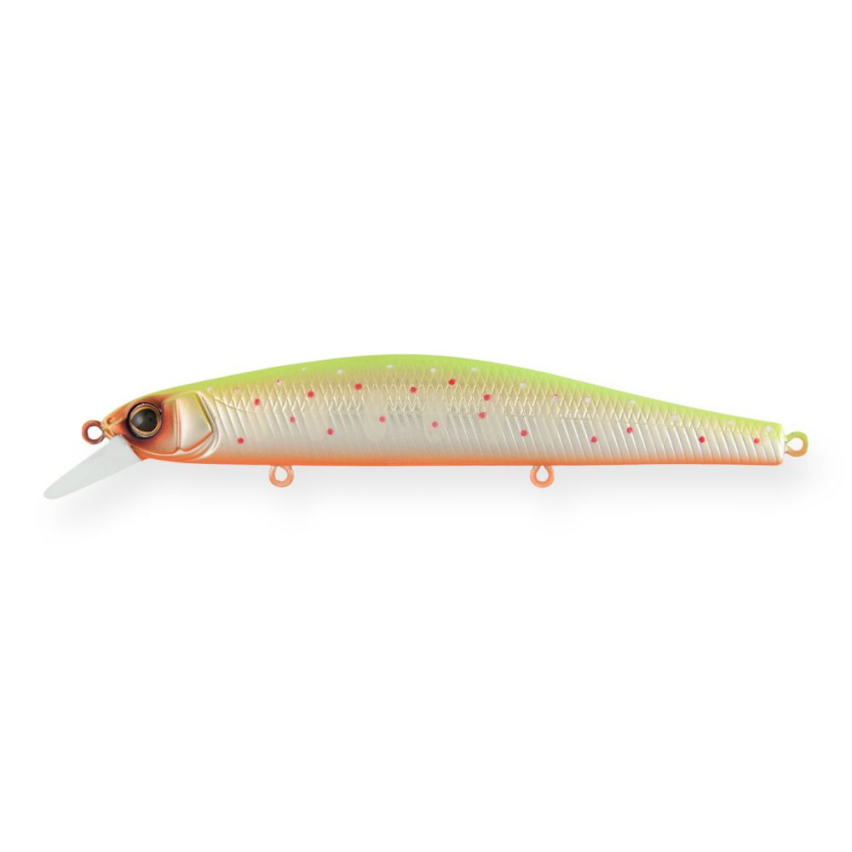 Strike Pro Inquisitor 110SP - воблер типа minnow с нейтральной плавучестью. Приманки данной серии оснащены магнитной системой для дальнего заброса. Минноу имеет небольшую довольно узкую лопатку, расположенную под углом примерно тридцать градусов. Данная приманка оснащена крючками Owner. На равномерной проводке игра мягкая, не нагружающая снасть, при этом отчетливо видны осевые довороты корпуса. При проводке стоп-энд-гоу на каждой паузе приманка успевает красиво помахать боками. Данное семейство отлично подходит для твичинговых проводок, при этом эти воблеры очень четко удерживаются на заданной глубине. Подходят для ловли большинства хищных видов рыб.