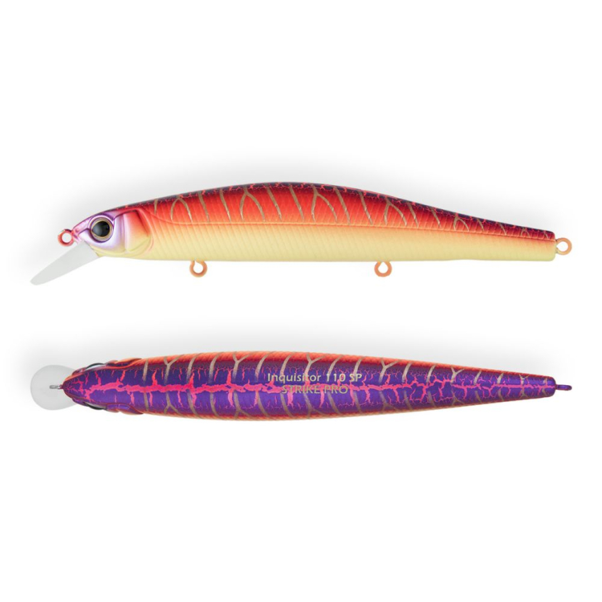 Strike Pro Inquisitor 110SP - воблер типа minnow с нейтральной плавучестью. Приманки данной серии оснащены магнитной системой для дальнего заброса. Минноу имеет небольшую довольно узкую лопатку, расположенную под углом примерно тридцать градусов. Данная приманка оснащена крючками Owner. На равномерной проводке игра мягкая, не нагружающая снасть, при этом отчетливо видны осевые довороты корпуса. При проводке стоп-энд-гоу на каждой паузе приманка успевает красиво помахать боками. Данное семейство отлично подходит для твичинговых проводок, при этом эти воблеры очень четко удерживаются на заданной глубине. Подходят для ловли большинства хищных видов рыб.