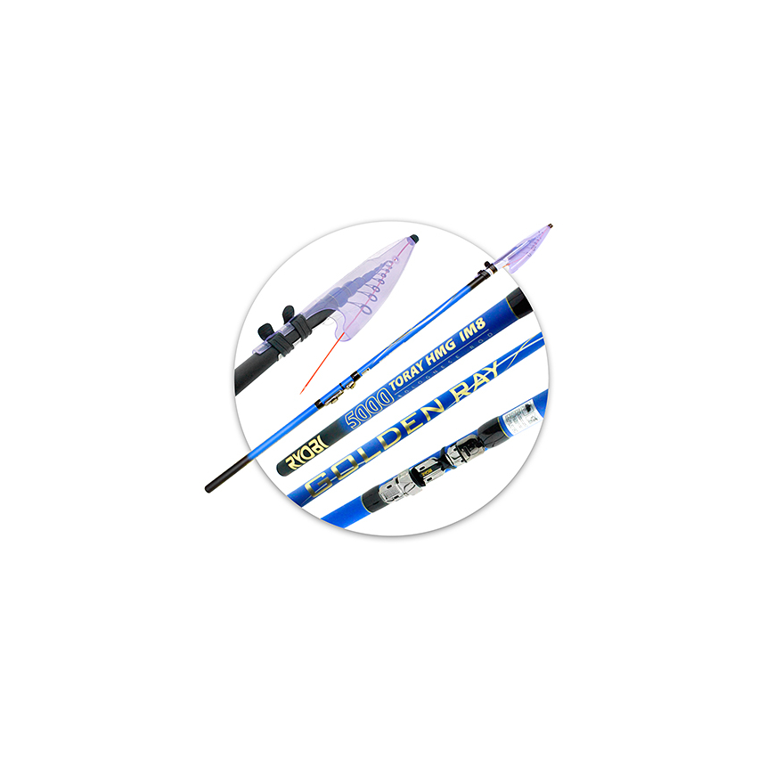 Ryobi GOLDEN RAY - это телескопическое болонское удилище, изготовленное из высокомодульного карбона от Японской компании TORAY. Удилище оснащено легкими пропускными кольцами со вставками SIC, легким и надежным катушкодержателем, и удобным защитным колпачком.