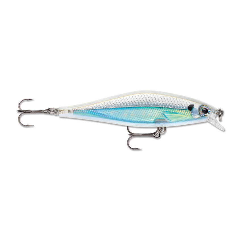 SHADOW RAP SHAD зто медленно всплывающий воблер , обладающий широким профилем, который отражает больше бликов в воде и тем самым позволяет ловить как в быстром темпе, так и в медленном с едва уловимым подергиванием. Имеет текстурированный корпус, на который нанесены полупрозрачные и матовые цвета. Предназначен для ловли щуки и окуня.