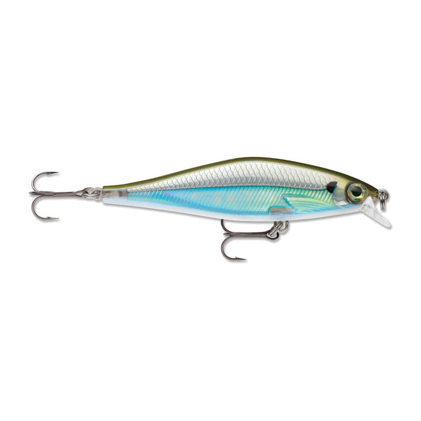 SHADOW RAP SHAD зто медленно всплывающий воблер , обладающий широким профилем, который отражает больше бликов в воде и тем самым позволяет ловить как в быстром темпе, так и в медленном с едва уловимым подергиванием. Имеет текстурированный корпус, на который нанесены полупрозрачные и матовые цвета. Предназначен для ловли щуки и окуня.